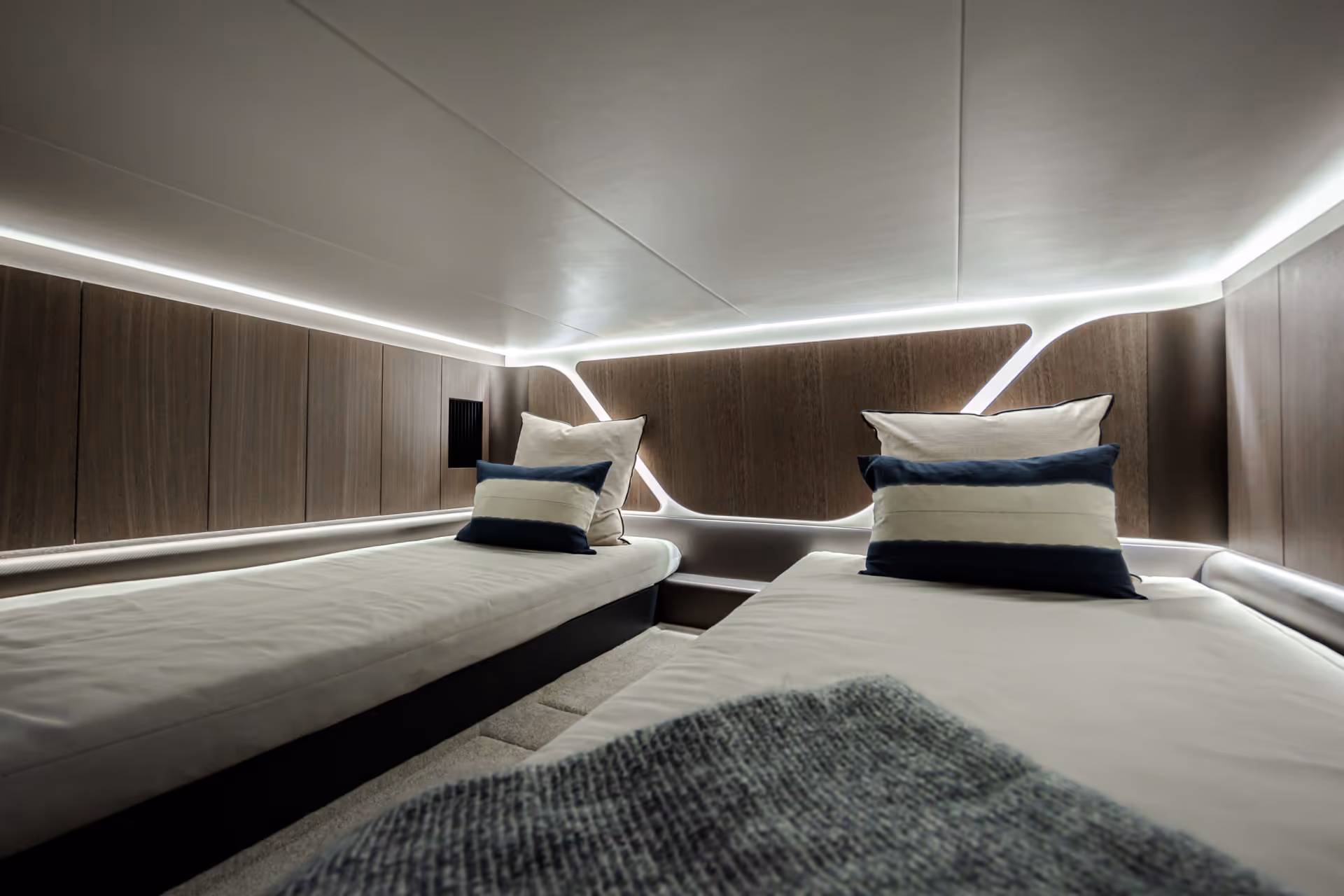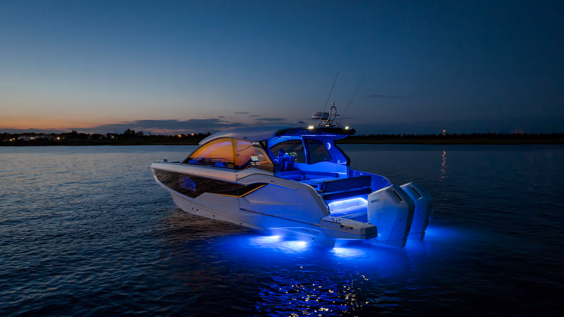 Das sportliche Profil und die kühnen Linien verleihen diesem Modell eine markante Präsenz auf dem Wasser.
