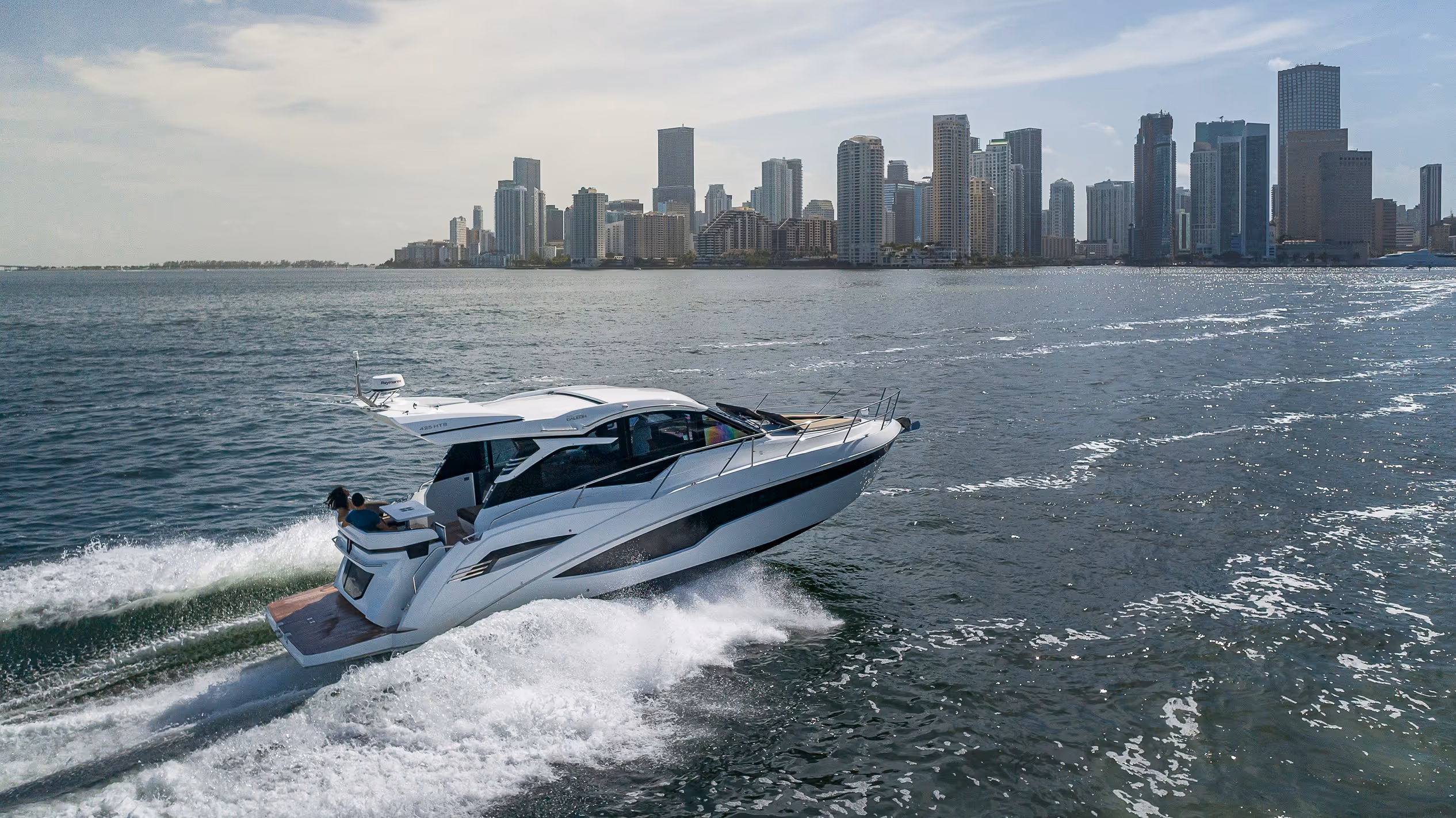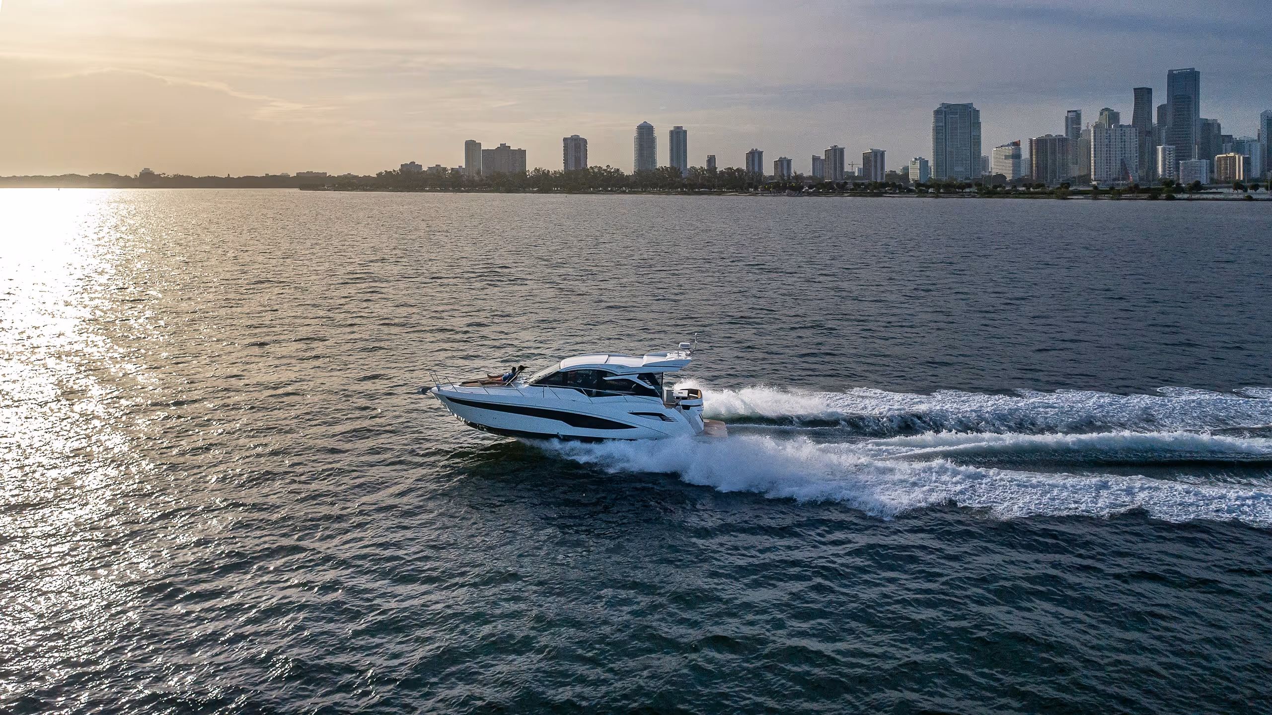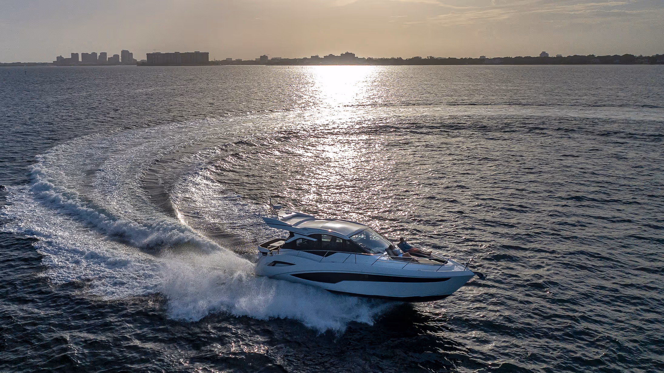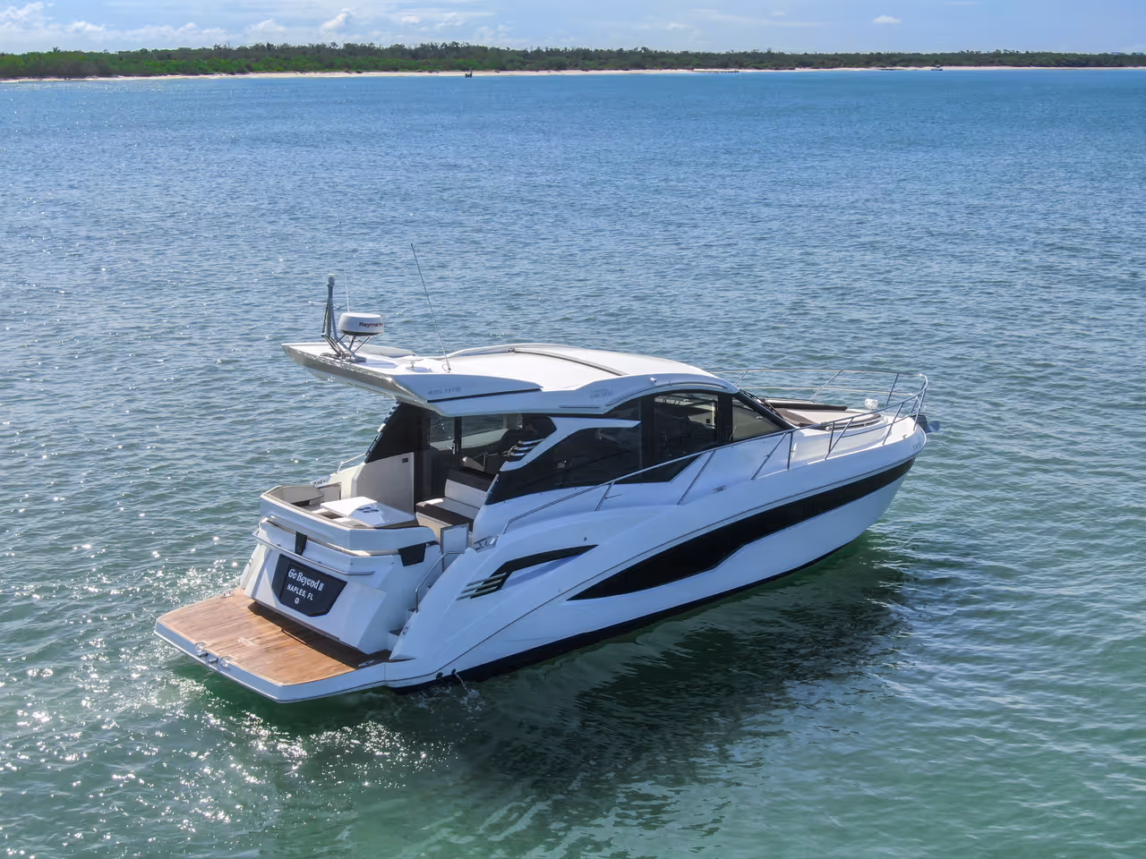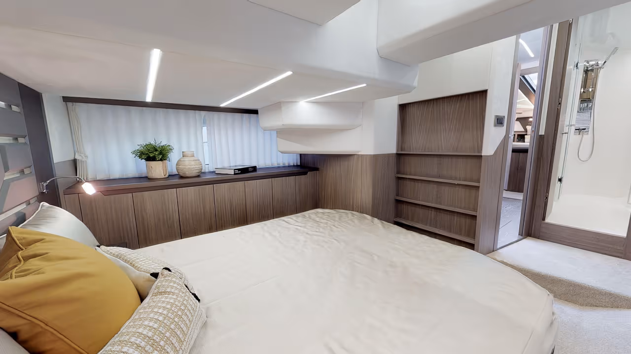Komfort und Stil das ganze Jahr über sind Standard mit einem vollständig geschlossenen Hauptdeck. Schlanke Linien und ein dynamisches Profil verbergen den Fokus auf Luxus und Funktionalität. Breite Seitendecks sorgen für sichere Bewegung bei jedem Wetter, während eine Beibootgarage den Alltag erleichtert. Diese Yacht ist die perfekte Mischung aus intelligentem Design, Komfort und Leistung.