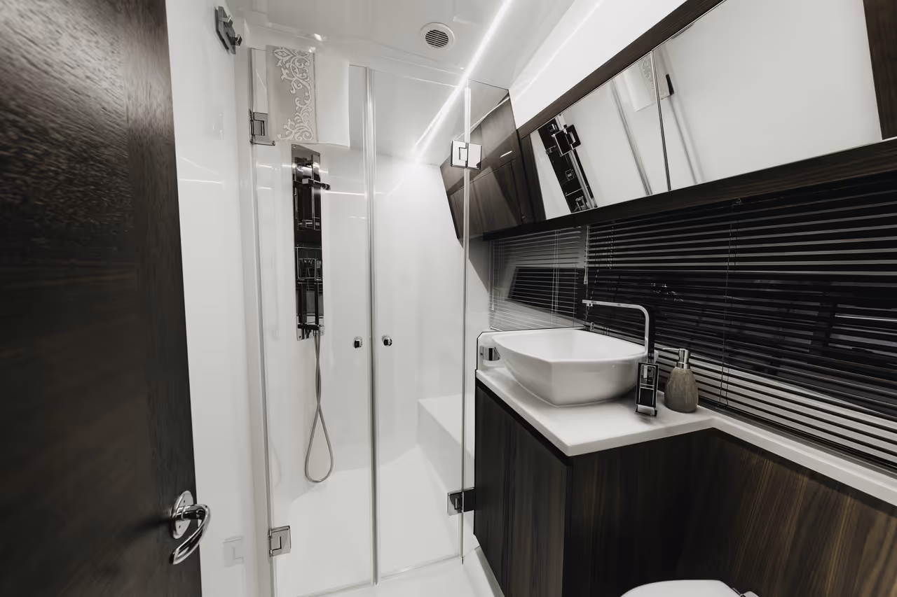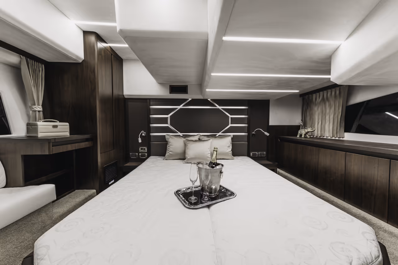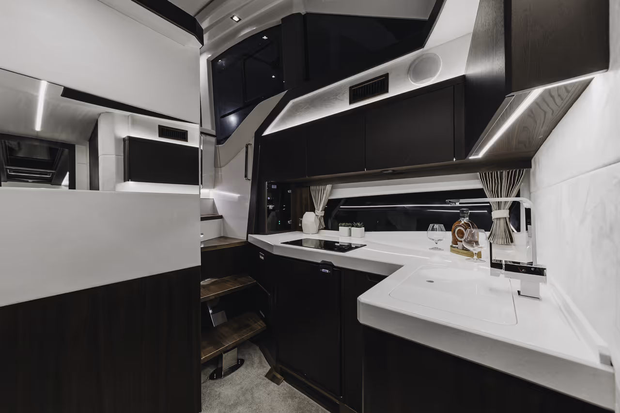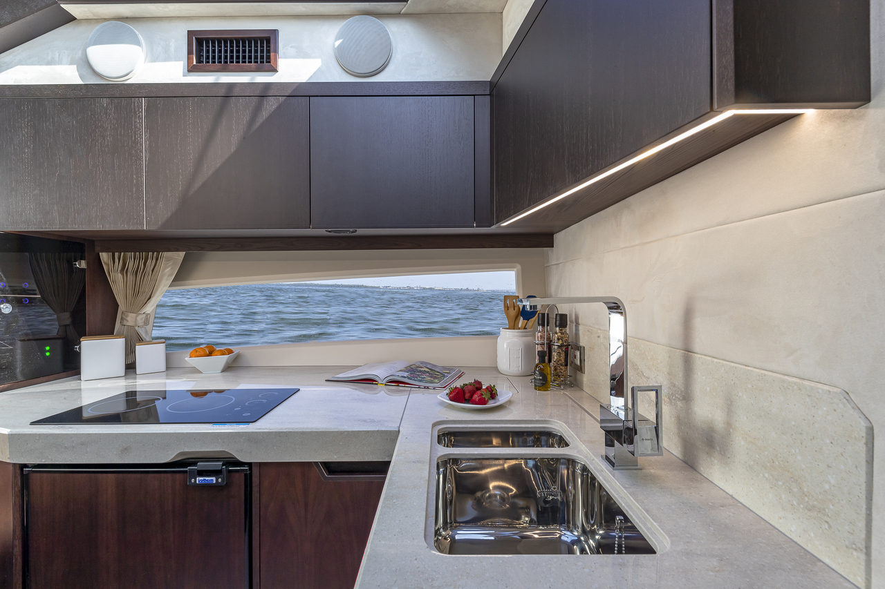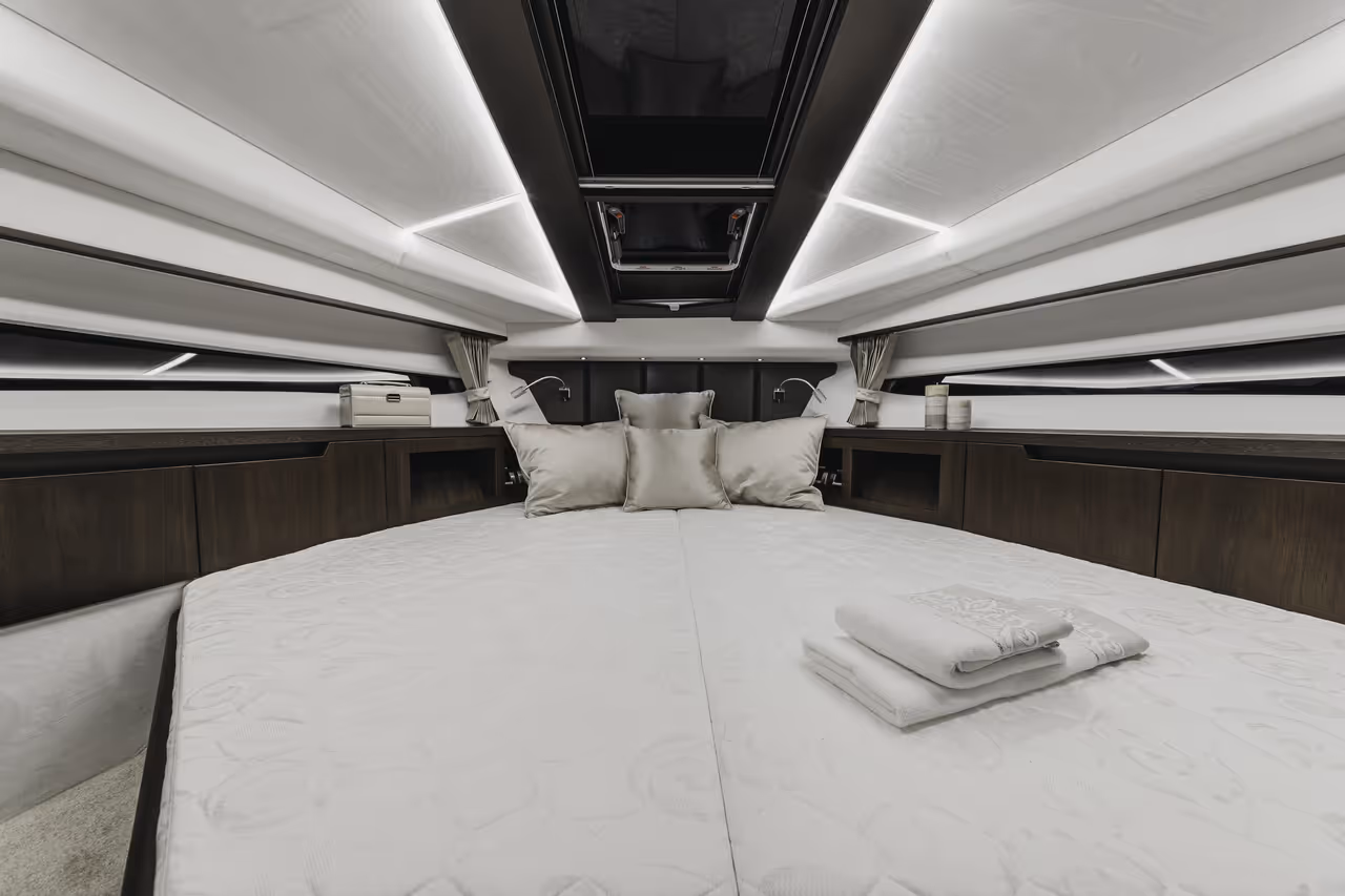 Vom offenen Cockpit bis zum sonnenverwöhnten Bug und der Badeplattform ist jeder Bereich auf Komfort, Stil und die Verbindung zum Meer ausgelegt.