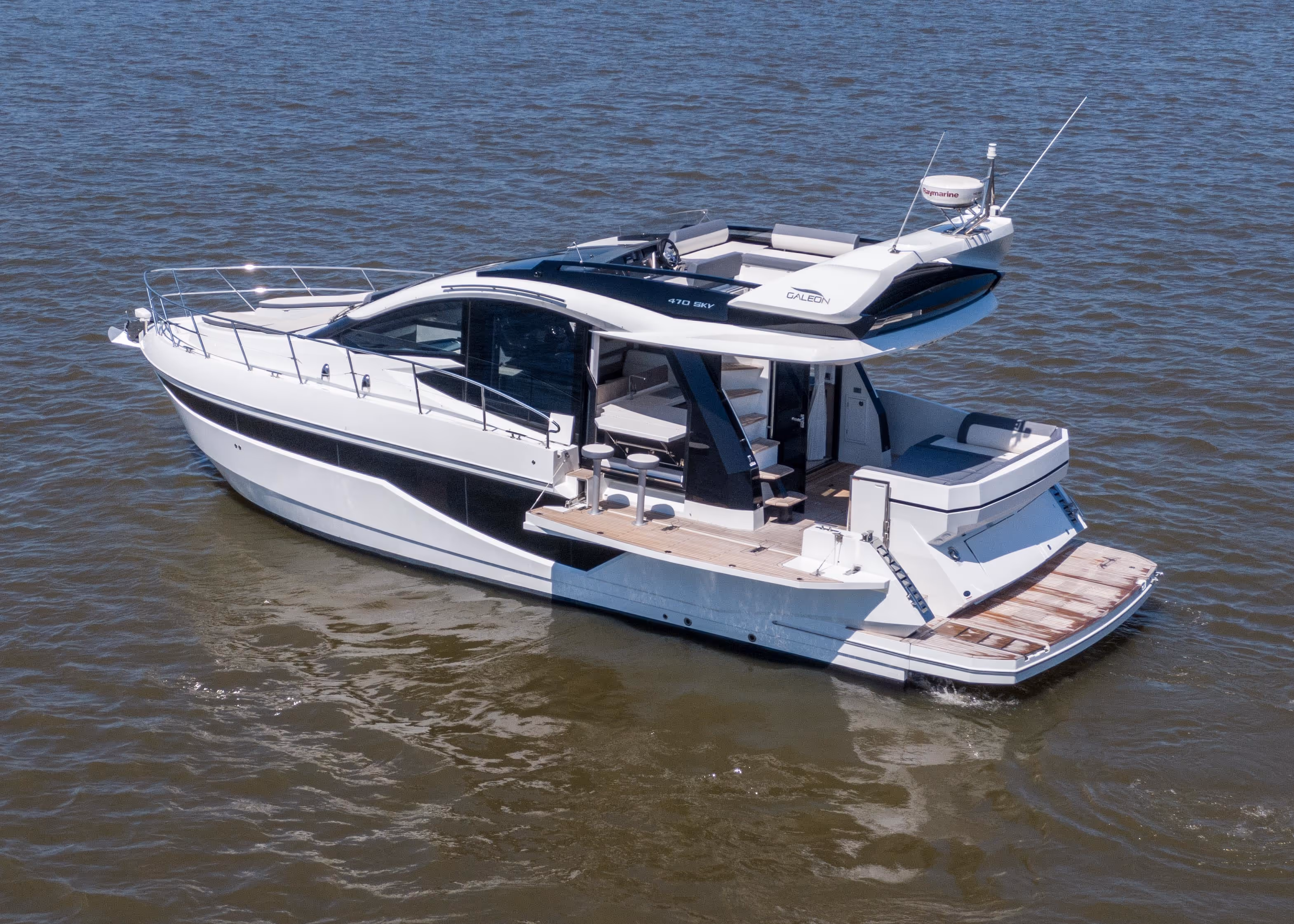Bei der Galeon 470 SKY geht es um Vielseitigkeit ohne Kompromisse - sie bietet die sportlichen Linien eines Hardtops mit der zusätzlichen Funktionalität einer Flybridge, die sich geschickt in ihrer schlanken Silhouette versteckt. Eine Yacht für alle, die sich mehr Freiheit, mehr Platz und mehr Innovation an Bord wünschen.