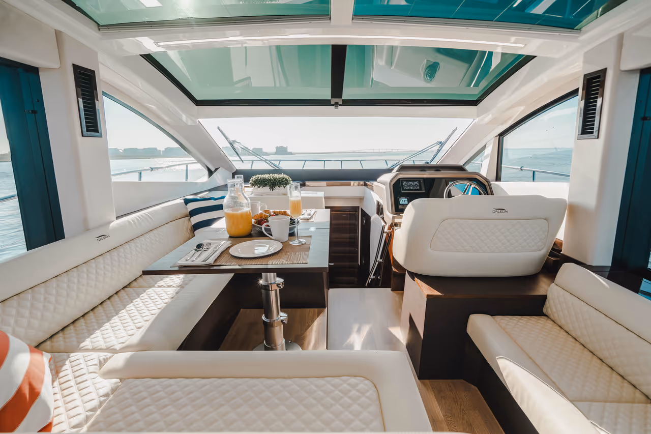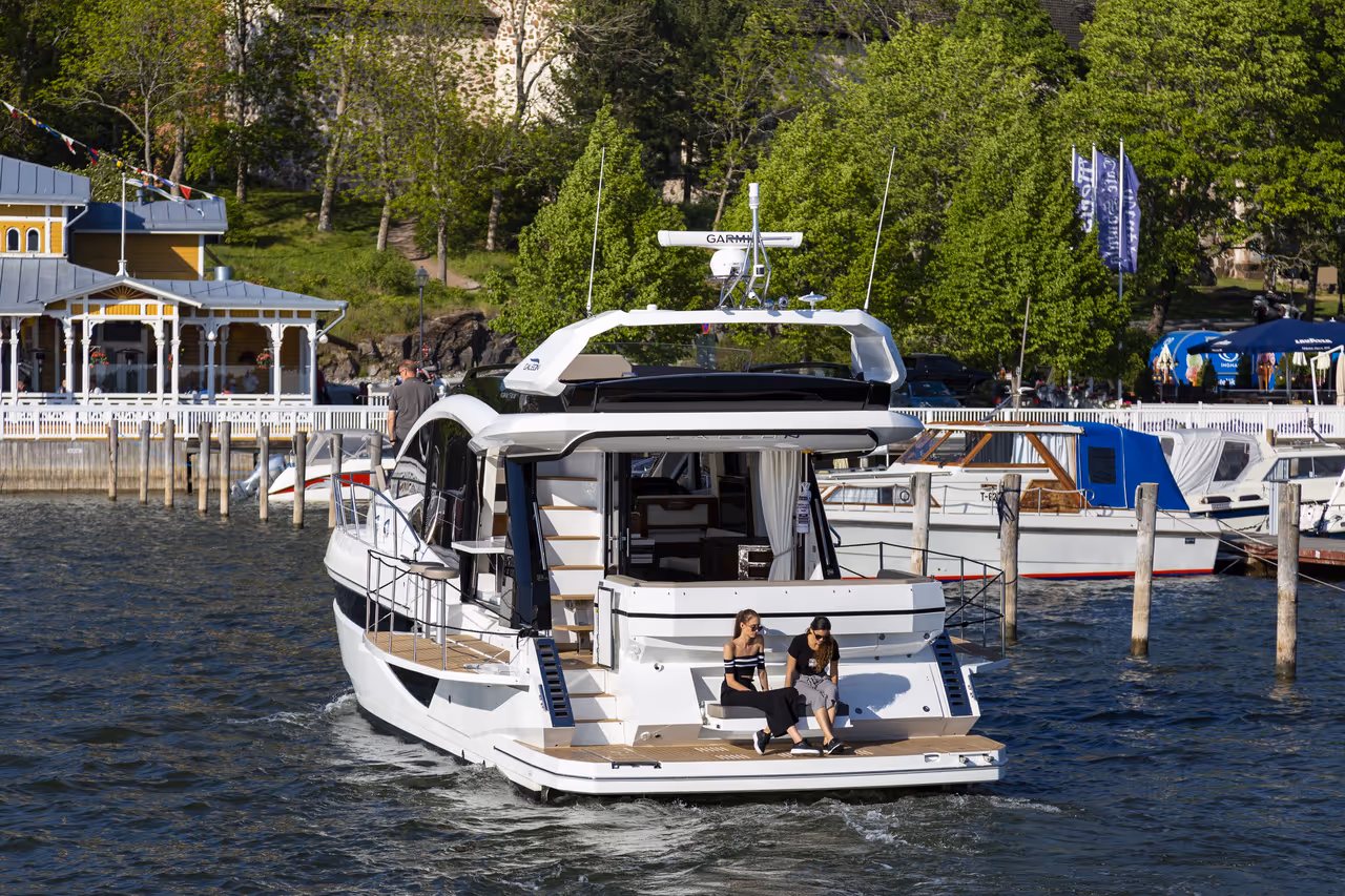 Die Galeon 470 SKY bietet das Beste aus beiden Welten - eine schlanke, dynamische Silhouette mit der versteckten Funktionalität einer voll ausgestatteten Flybridge. Ausgestattet mit innovativen Merkmalen wie dem Beach Mode mit ausklappbaren Balkonen, einem geräumigen Drei-Kabinen-Layout und hochwertigen Oberflächen definiert diese Yacht das, was im 47-Fuß-Segment möglich ist, neu. Perfekt für Eigner, die Leistung, Flexibilität und Stil ohne Kompromisse verlangen.