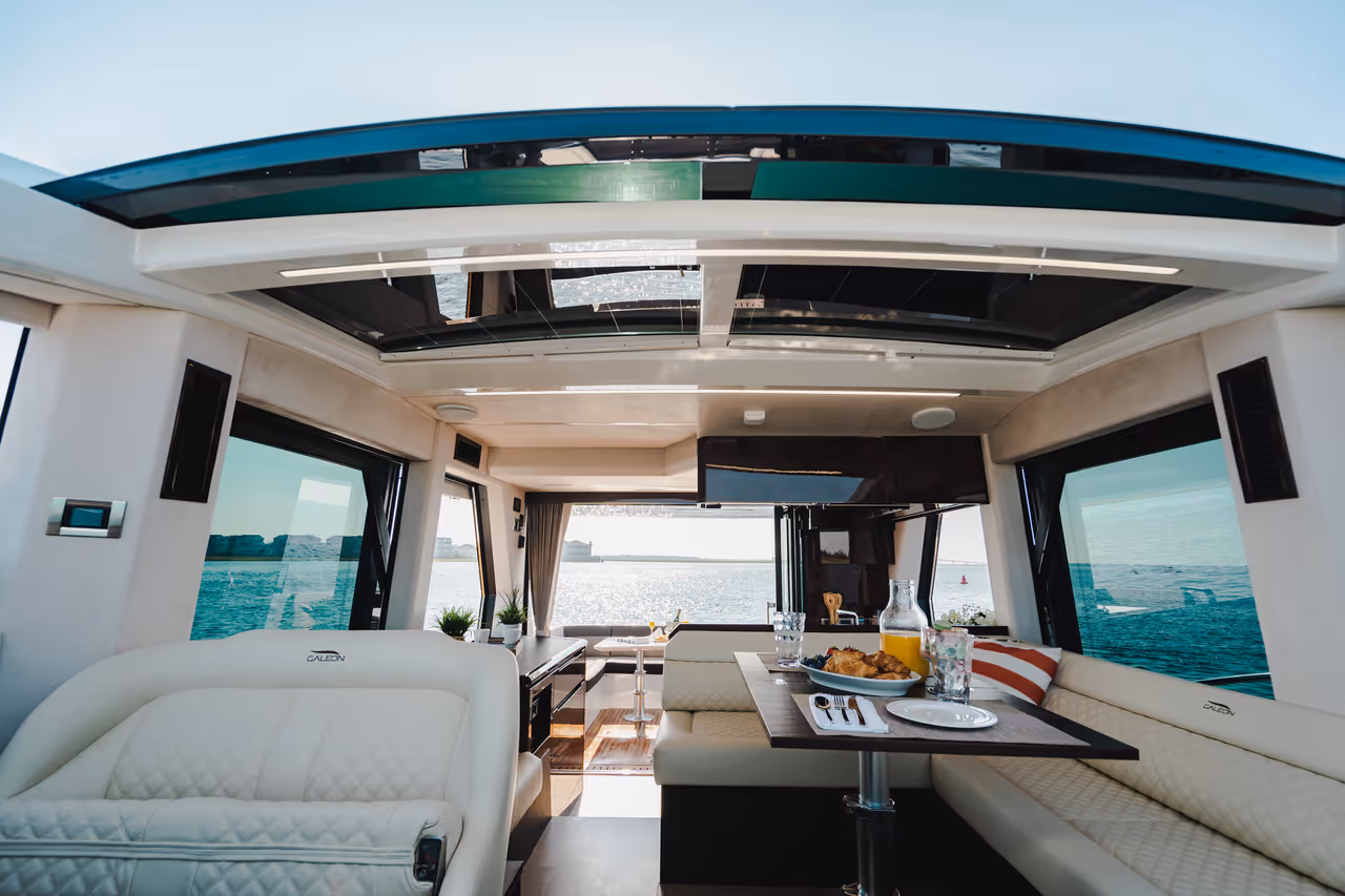 Die Galeon 470 SKY bietet ein intelligentes, ausgewogenes Layout, das jeden Zentimeter an Bord optimal ausnutzt. Mit klar definierten Sozialbereichen, einer komfortablen Dreier-Kabinenanordnung und nahtlosen Übergängen zwischen Innen- und Außenbereichen passt sie sich Ihrem Lebensstil an - ob Sie nun mit der Familie unterwegs sind oder Gäste empfangen.