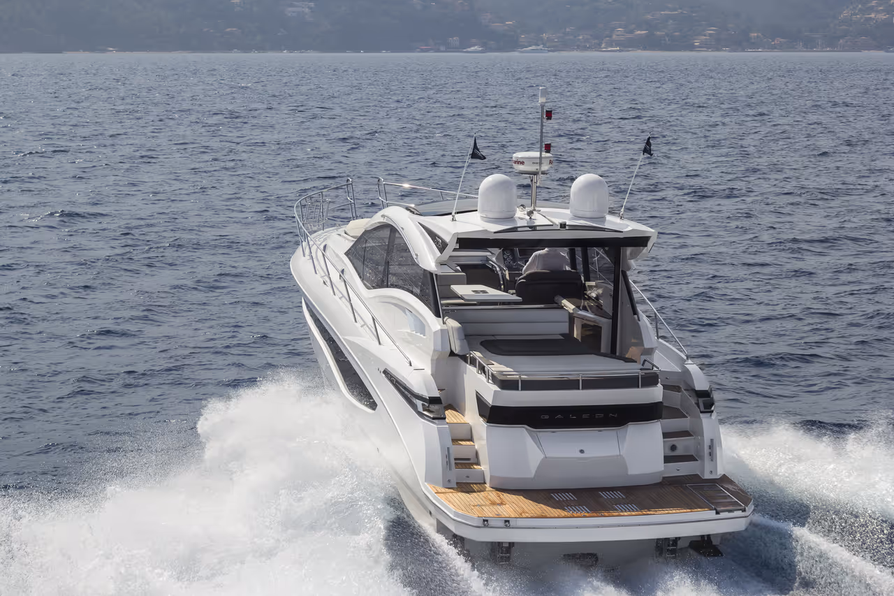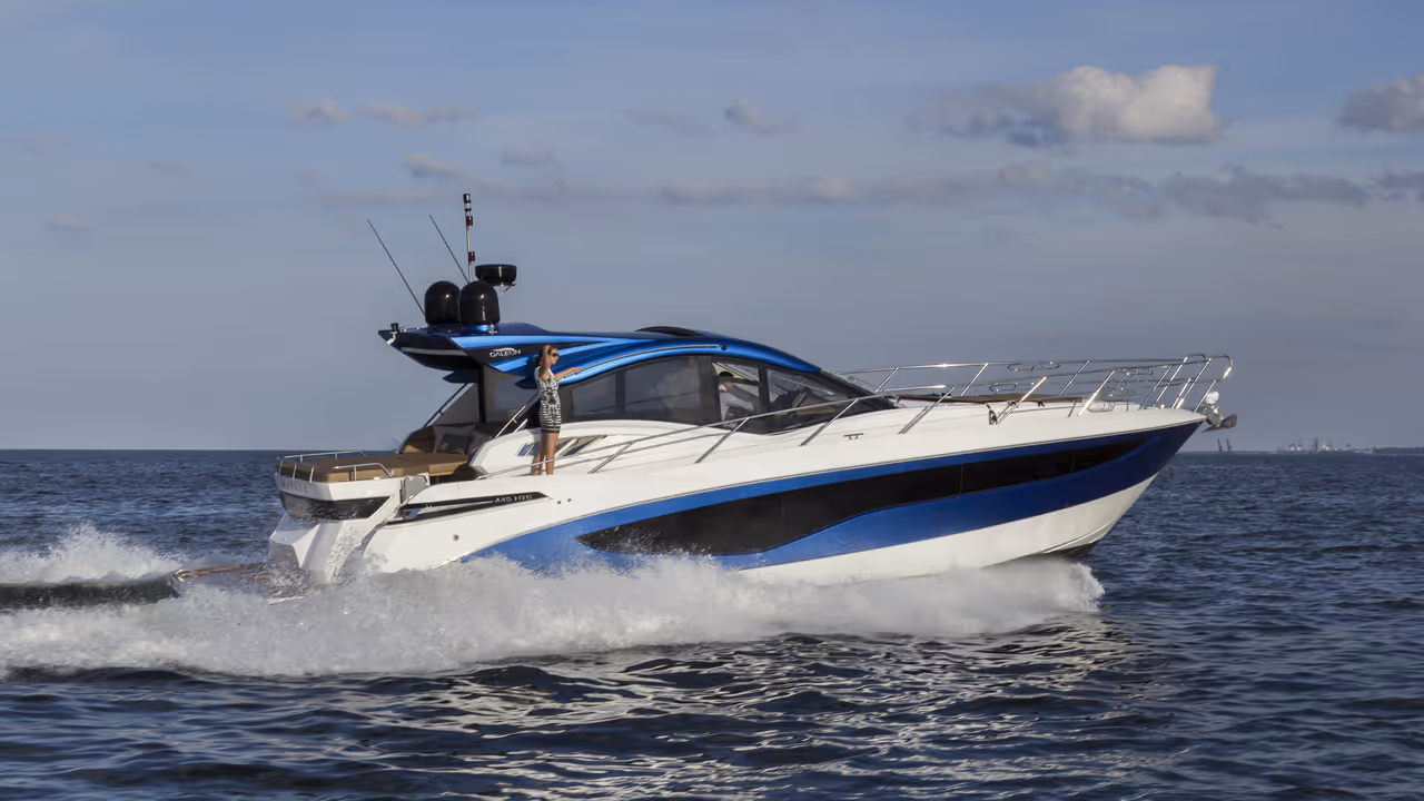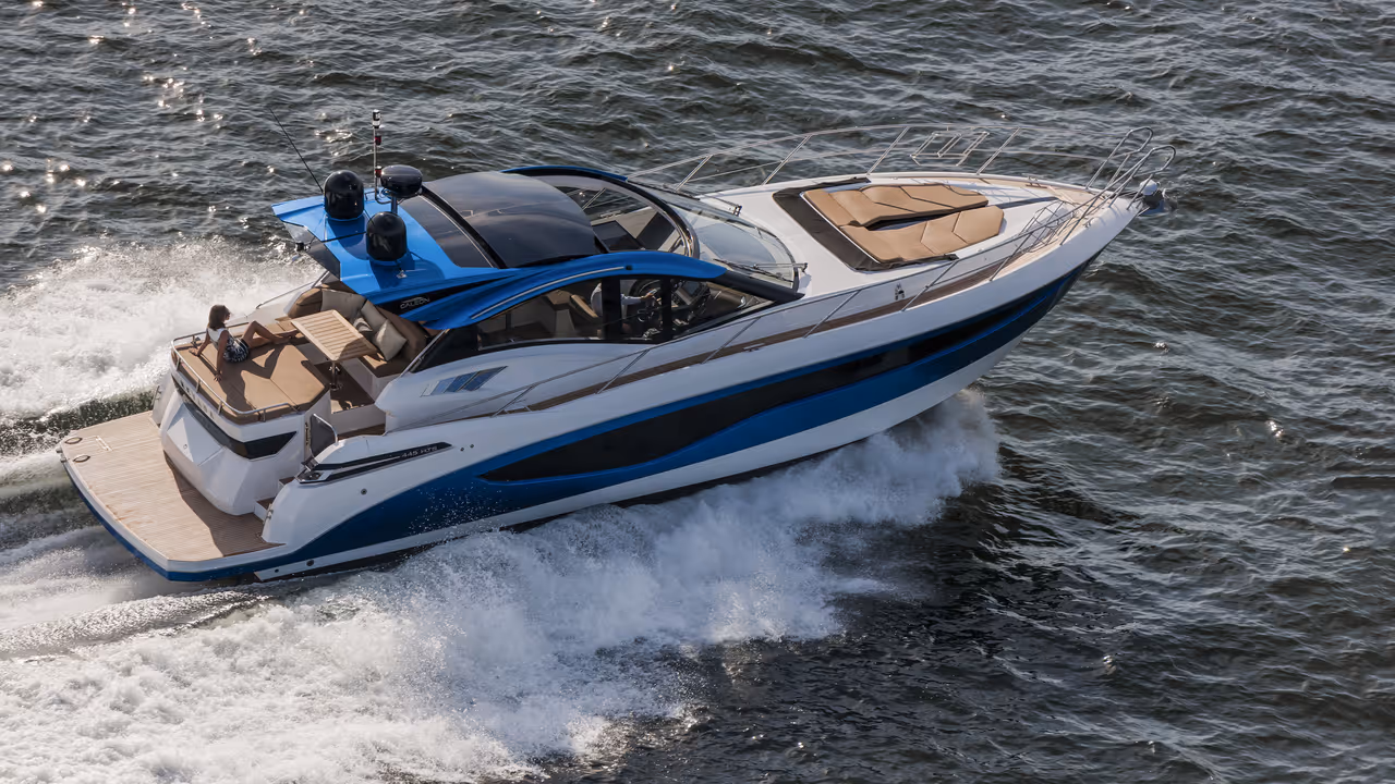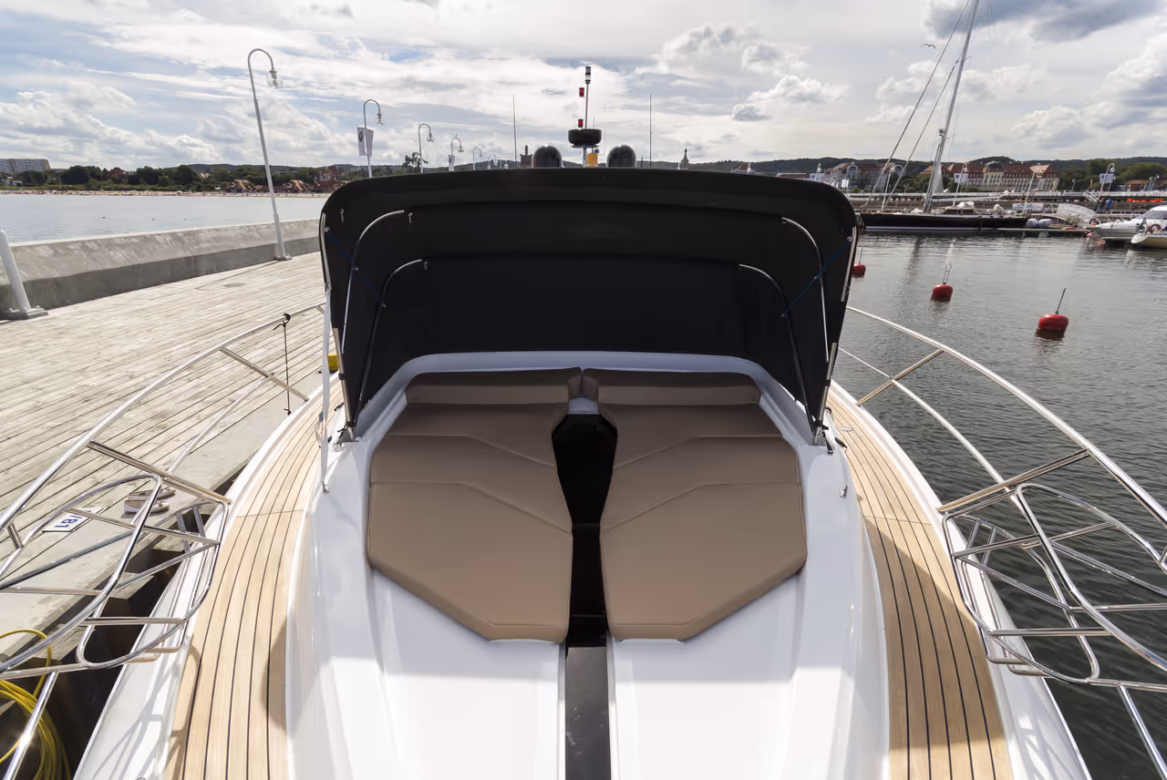 Sportlich, kühn und für Leistung gebaut. Mit ihren aggressiven Linien, dem flachen Hardtop und dem kraftvollen Handling bietet die 485 HTS ein berauschendes Erlebnis auf dem Wasser - ohne auf Komfort zu verzichten. Im Inneren vervollständigen ein heller Salon und zwei luxuriöse Kabinen die perfekte Balance aus Geschwindigkeit und Stil.