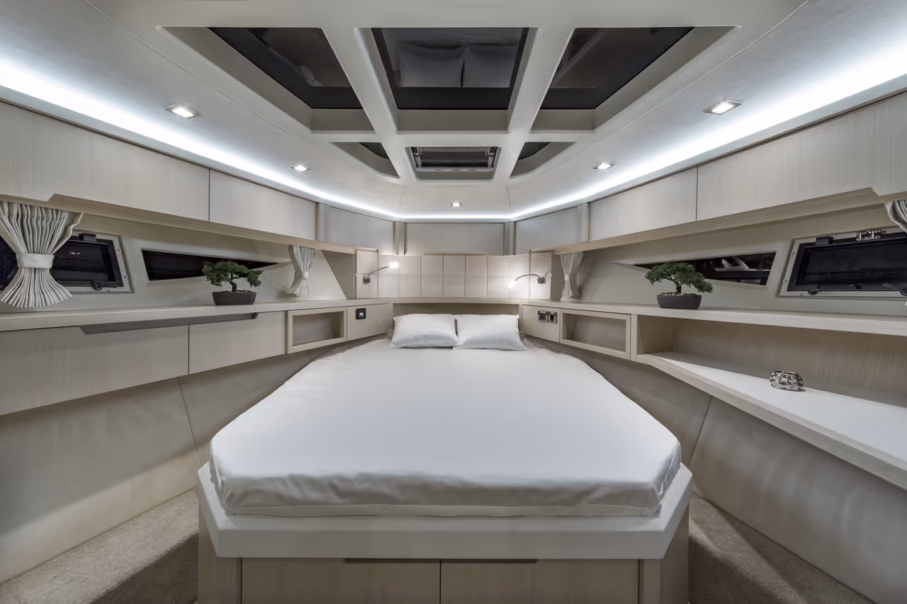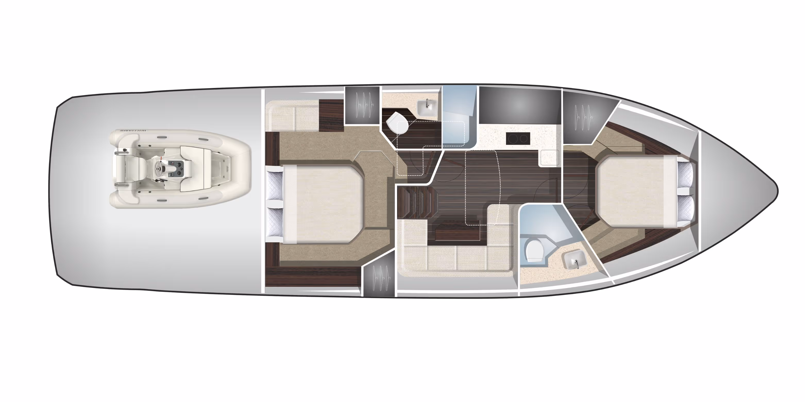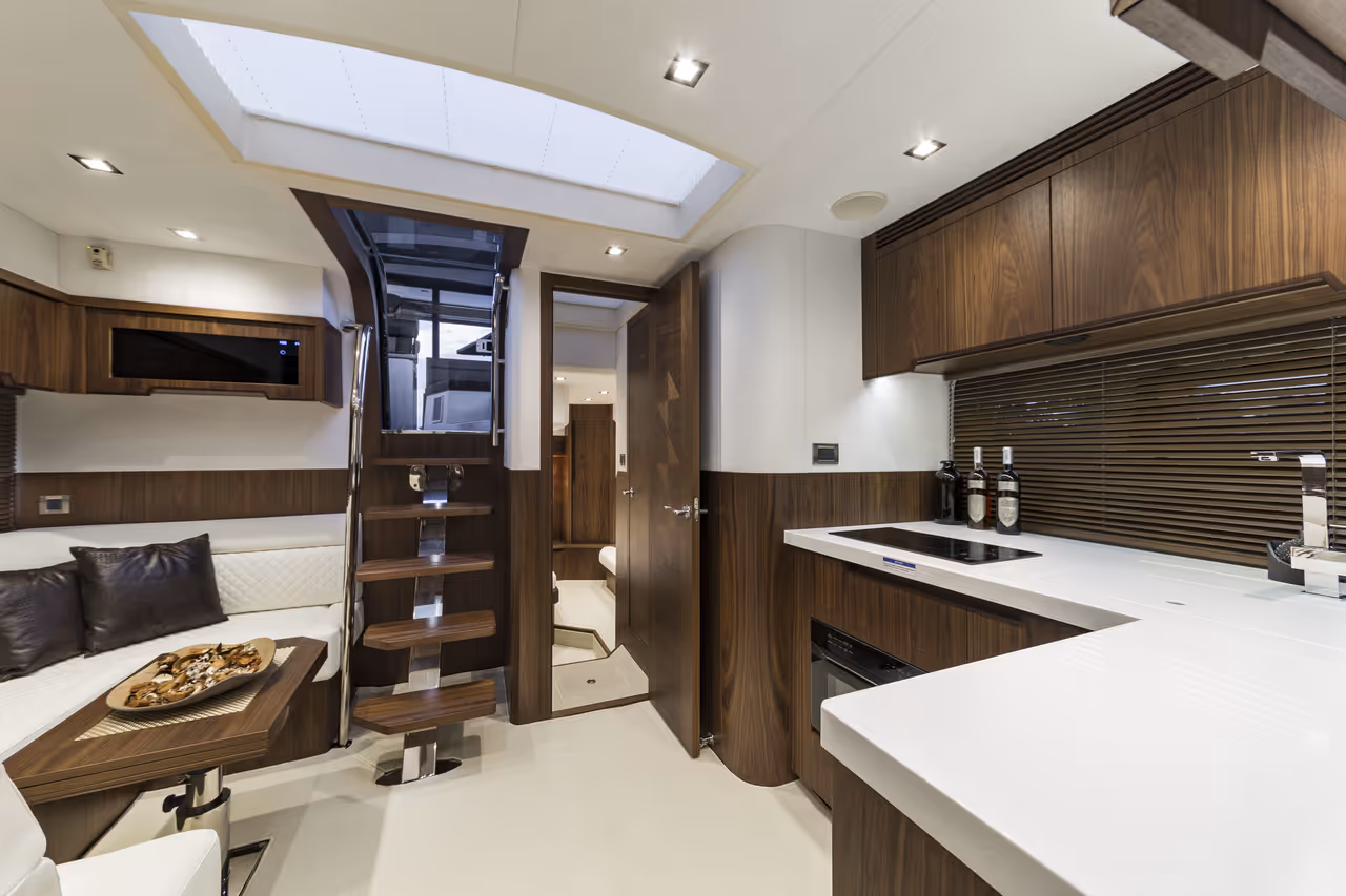 Gehen Sie an Bord und entdecken Sie durchdacht gestaltete Räume, die Komfort, Funktionalität und Stil vereinen. Ob Sie sich auf der Flybridge entspannen, das achterliche Cockpit genießen oder am Bug die Sonne genießen, jedes Deck ist so gestaltet, dass Sie Ihre Zeit auf See genießen können.