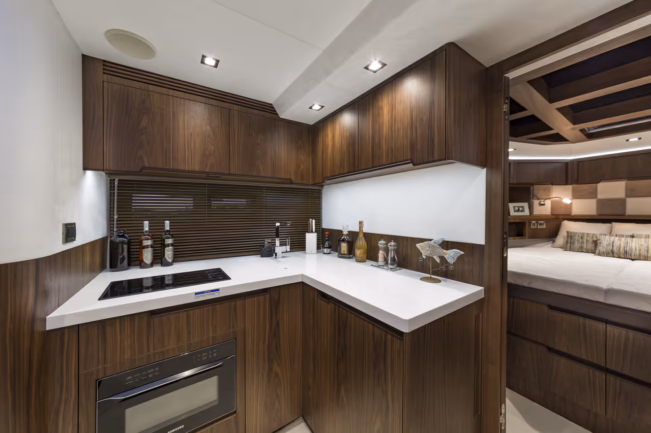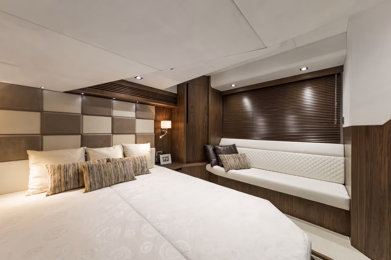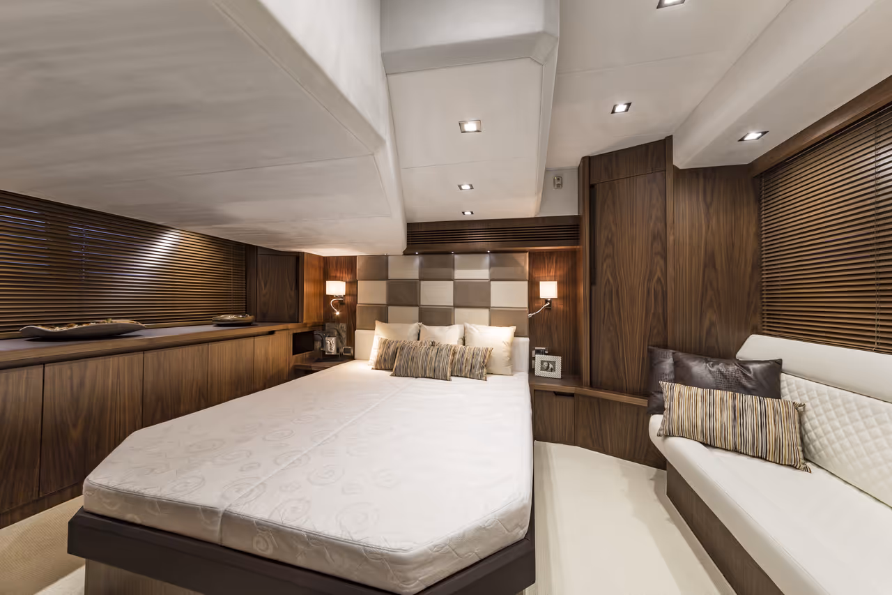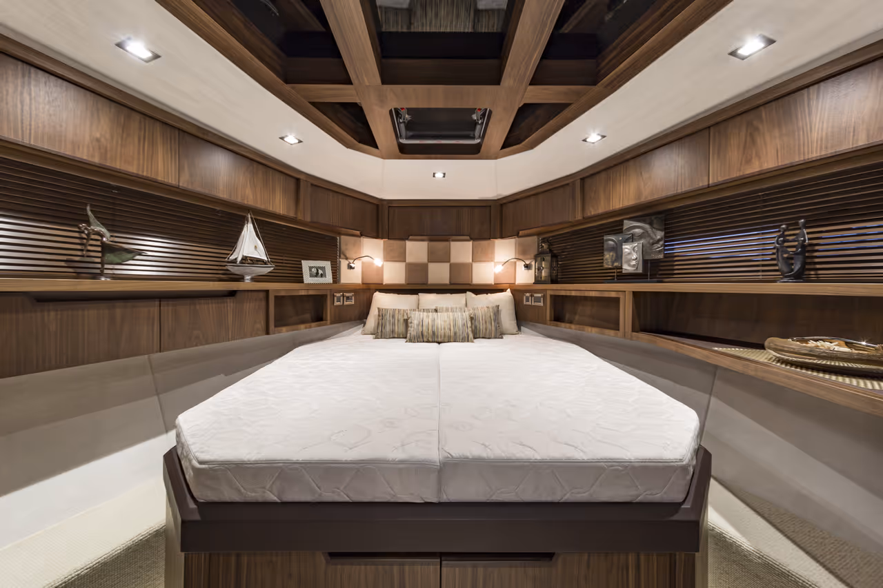 Gehen Sie an Bord und entdecken Sie durchdacht gestaltete Räume, die Komfort, Funktionalität und Stil vereinen. Ob Sie sich auf der Flybridge entspannen, das achterliche Cockpit genießen oder am Bug die Sonne genießen, jedes Deck ist so gestaltet, dass Sie Ihre Zeit auf See genießen können.