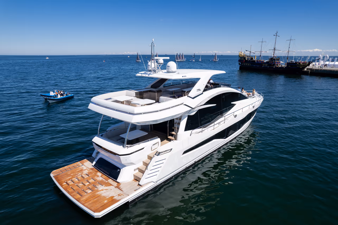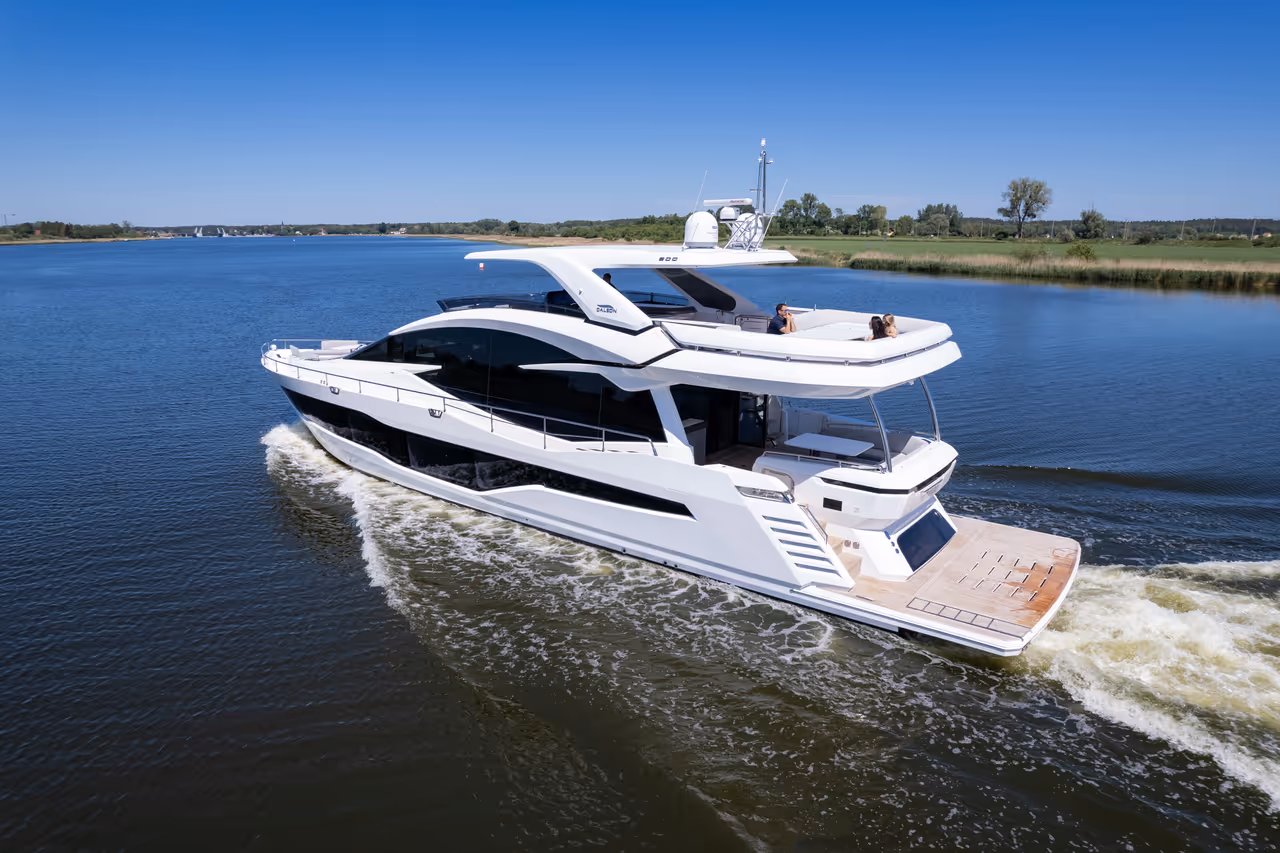 Die Galeon 800 FLY verbindet meisterhaft zeitlose Eleganz mit moderner Innovation und bietet großzügige Wohnräume, atemberaubende Panoramablicke und einen nahtlosen Übergang zwischen Innen- und Außenbereich. Mit ihrem kühnen Design, der raffinierten Handwerkskunst und der durchdachten Aufteilung über alle Decks setzt sie neue Maßstäbe im Segment der 25-Meter-Luxusyachten.